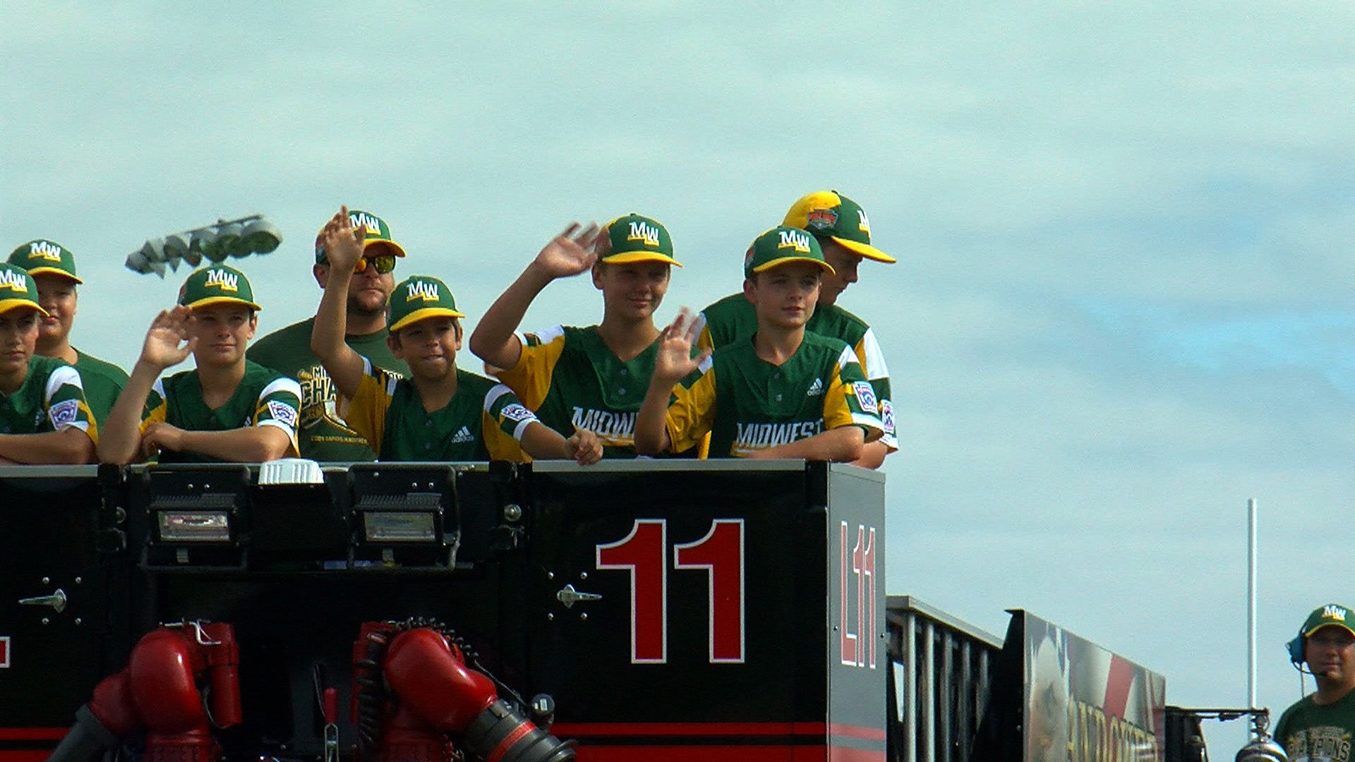 Dozens of parents, grandparents and fans lined up as the kids were driven into Sand Creek Park on two fire trucks.