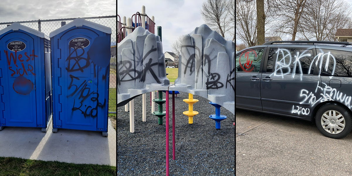 The vandalism included spray painting of garage doors, vehicles, glass on homes and playground equipment. Authorities estimate the damage to be in the range of $30,000 to $50,000.