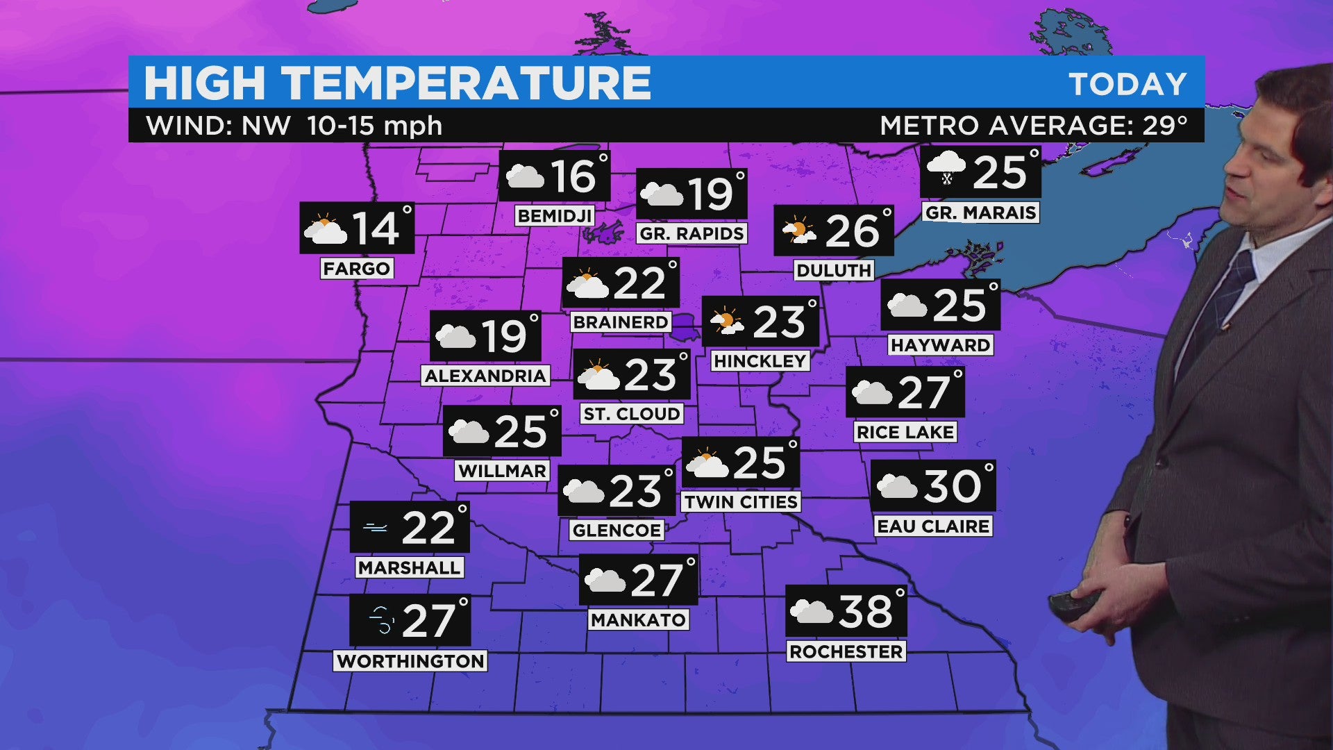 The metro can expect wind gusts from 10-15 mph, and a high of 25. Much of the state will be close to average, temperature-wise.