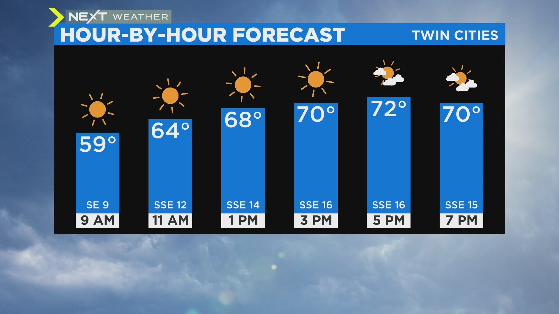 It's sunny all across Minnesota on Saturday morning, with temperatures in the 50s in most areas. It'll warm up to 73 degrees in the Twin Cities as the day goes on.