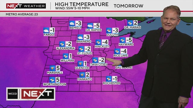 NEXT Weather meteorologist Chris Shaffer says high temperatures on Saturday in many parts of central Minnesota will be below zero degrees.