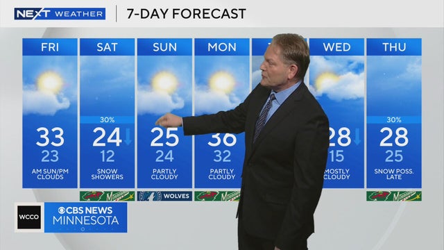 Friday will be mostly cloudy and slightly cooler. But our high of 33 will still be well above average, WCCO meteorologist Adam Del Rosso reports.