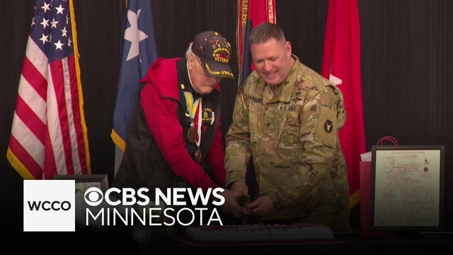 Don Halverson's fellow members of the Minnesota National Guard's Red Bull 34th Infantry Division threw him an early celebration in Arden Hills, Minnesota.
