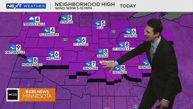 NEXT Weather meteorologist Chris Shaffer says high temperatures in most of Minnesota will stay in the single digits on Tuesday.
