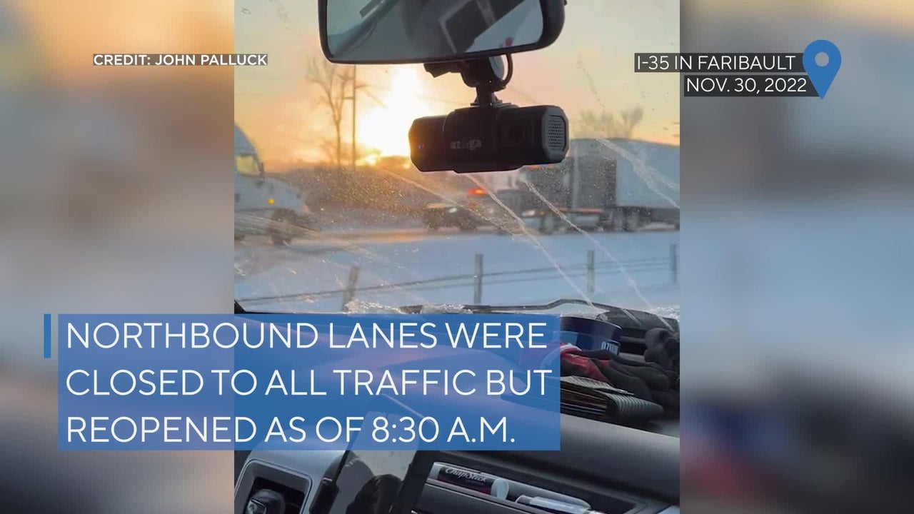 Raw video of two jackknifed semis that temporarily blocked traffic on northbound I-35 in Faribault Wednesday morning. f