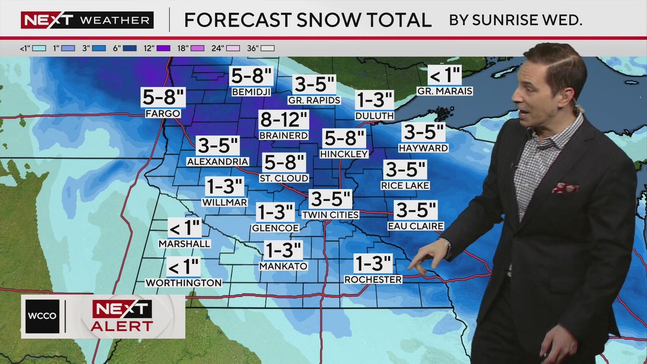 Snow continues into the night. The Winter Storm Warning and Winter Weather Advisory hold until 6 a.m. Wednesday, WCCO meteorologist Mike Augustyniak reports.