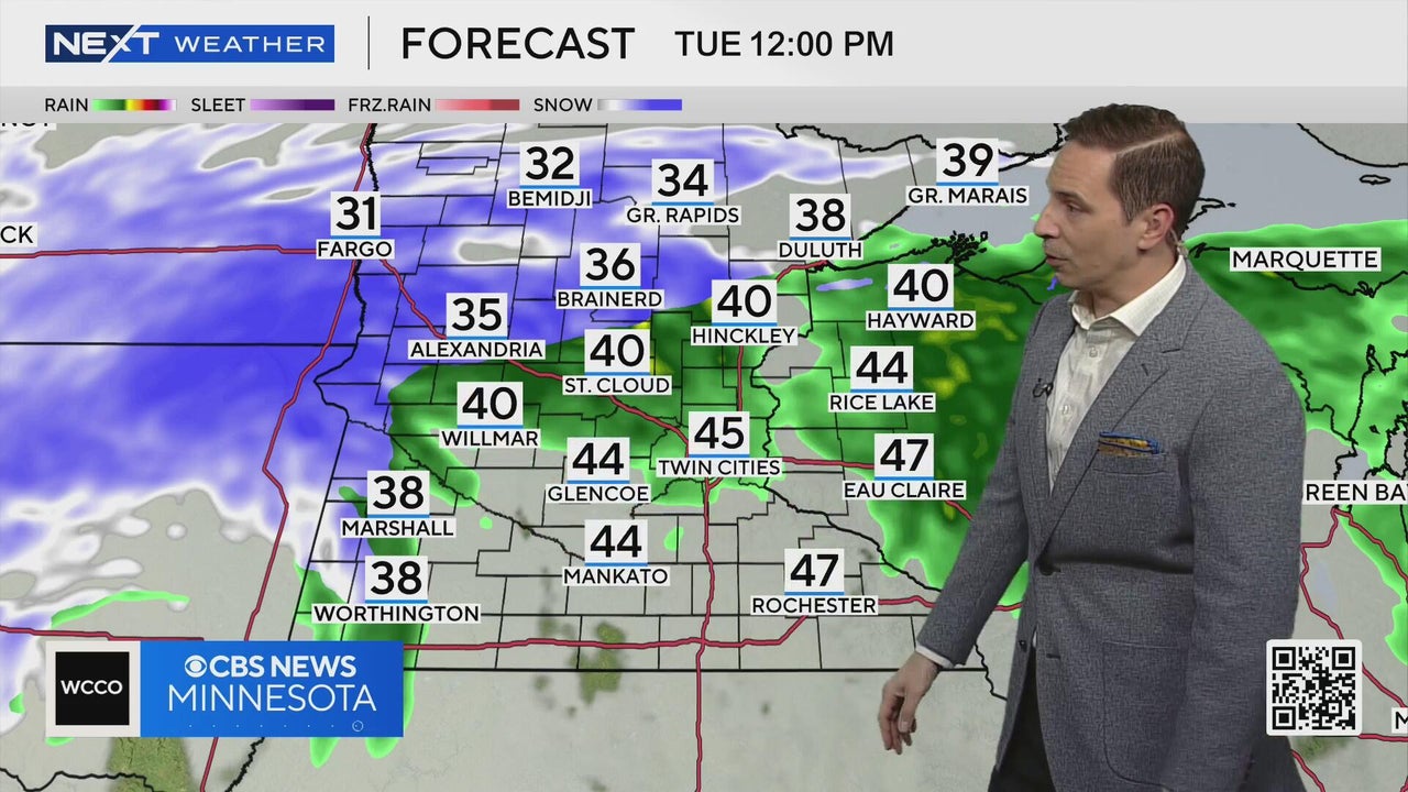 Most of Tuesday will feature rain with temperatures in the 40s. By late afternoon into the evening, it changes over to wet snow, which should wrap up by Wednesday morning, WCCO meteorologist Mike Augustyniak reports.