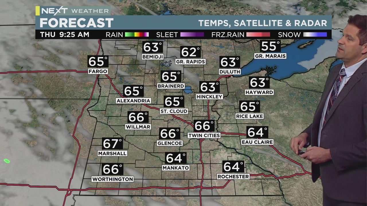 Thursday is off to a bright start, and temperatures will get close to 80 in the Twin Cities.