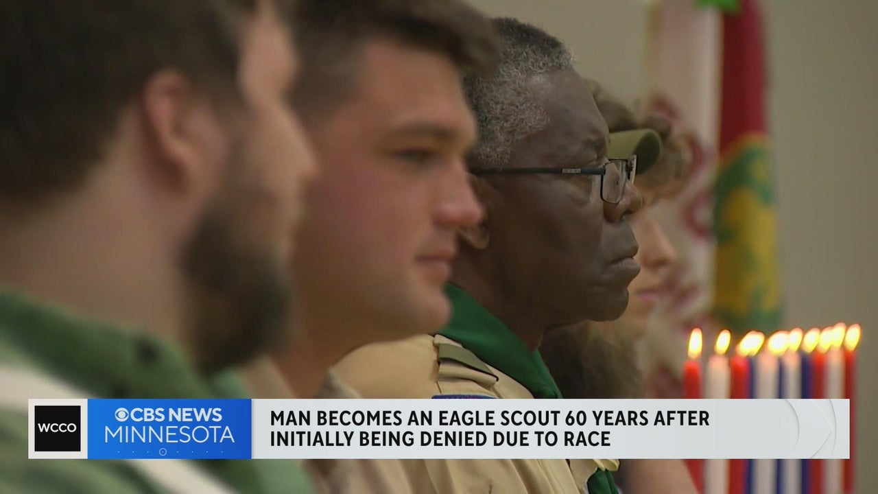 A black boy scout receives Eagle Scout status