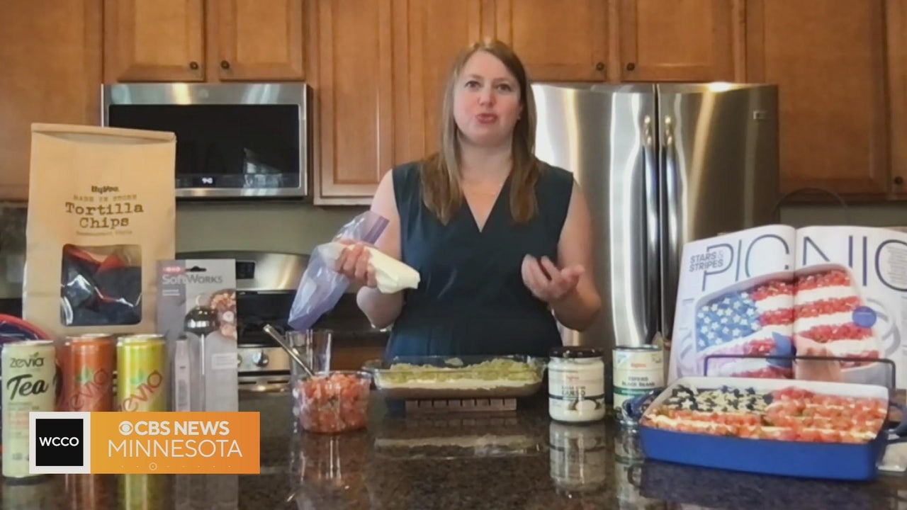 Registered Dietitian Melissa Jaeger shows off a "stars-and-stripes" layered dip.