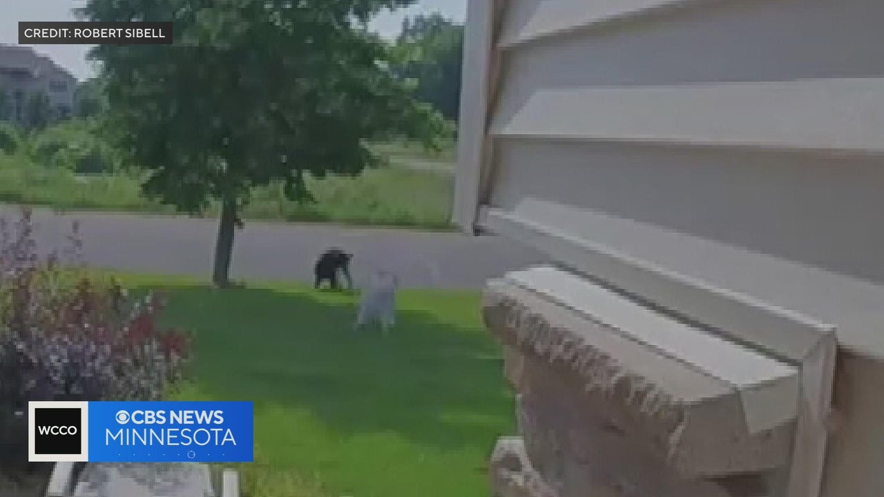 Dog confronts black bear in Twin Cities yard