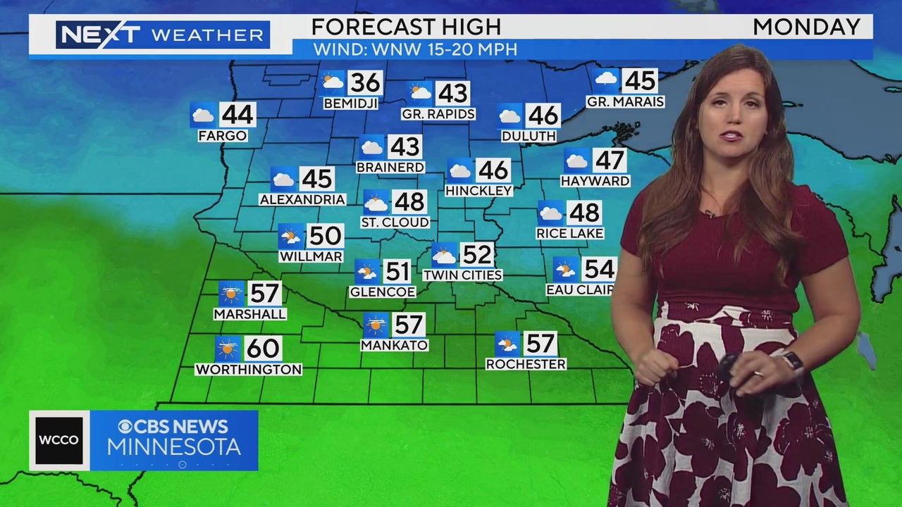 WCCO meteorologist Katie Steiner says tomorrow will be in the 50s. North and central Minnesota will see the best changes for rain.