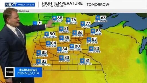 Meteorologist Chris Shaffer says the majority of Minnesota could see 80-degree temperatures on Tuesday, and above average temperatures through the rest of the week.