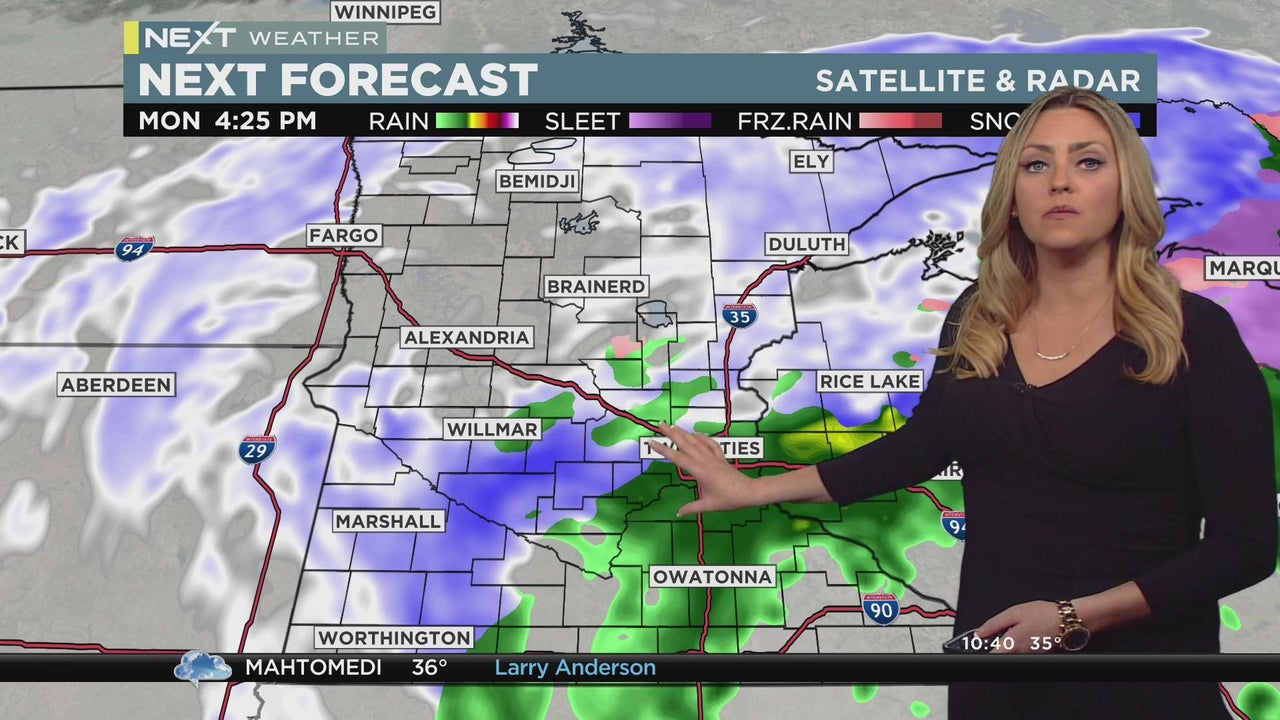 Rain will fall for most of Monday in the Twin Cities, before turning to snow in the evening.