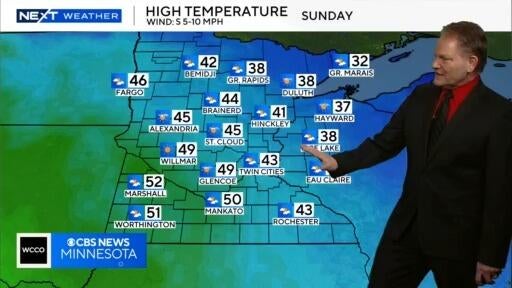 High temperatures are expected to be in the 40s and 50s across Minnesota on Sunday, according to Meteorologist Chris Shaffer.