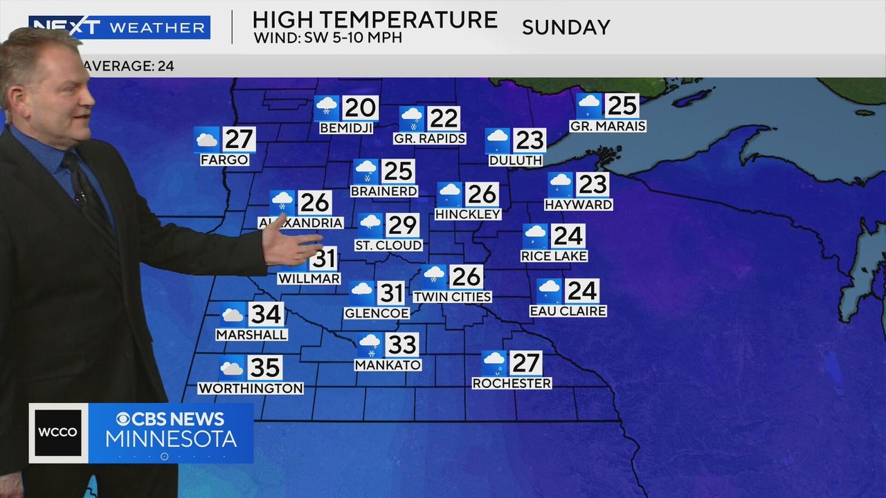 NEXT Weather meteorologist Chris Shaffer says parts of central and southern Minnesota could reach the low 30s on Sunday.