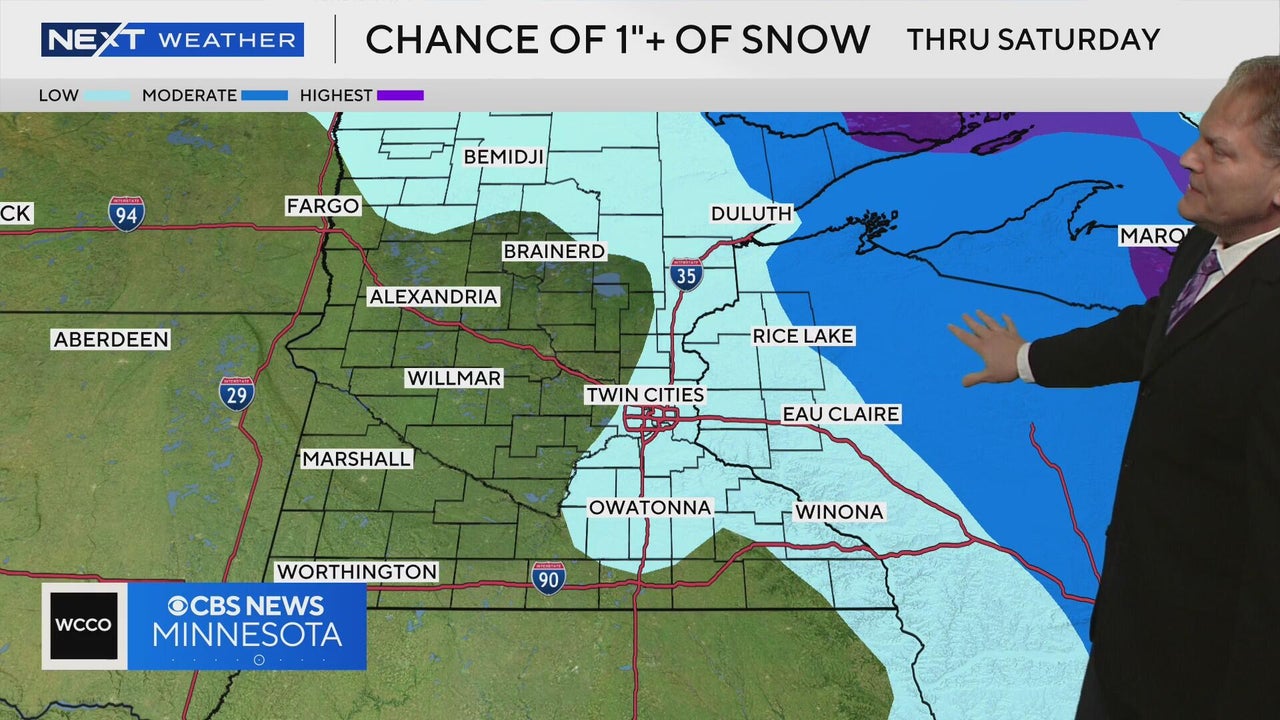 There's a low chance that the Twin Cities will see an inch or more of snow by the end of Saturday, according to NEXT Weather meteorologist Chris Shaffer.