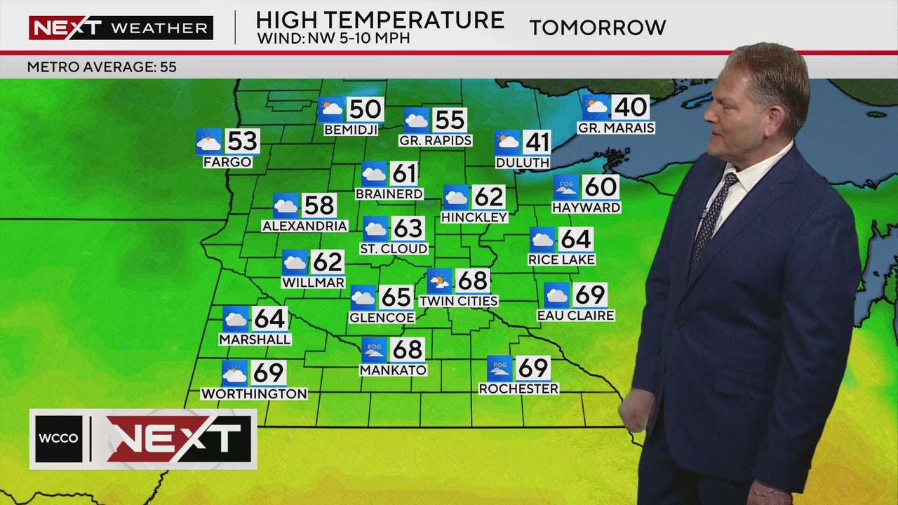 Following an active Monday, conditions across Minnesota will be calm on Tuesday with high temperatures in the 60s in parts.