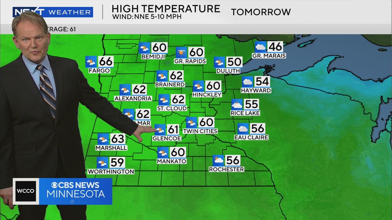 WCCO meteorologist Chris Shaffer says rain showers will clear out overnight and clouds will clear out tomorrow with highs near 60.