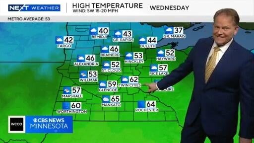 NEXT Weather meteorologist Chris Shaffer says temperatures will be in the 40s on Tuesday in the Twin Cities before warming to the 60s on Wednesday, though some residents could see rain on the latter of the days.