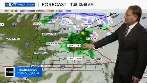 NEXT Weather Meteorologist Chris Shaffer says northeast Minnesota could see freezing rain or light snow early on Tuesday. Temperatures in the Twin Cities will hit 40 degrees by the afternoon.
