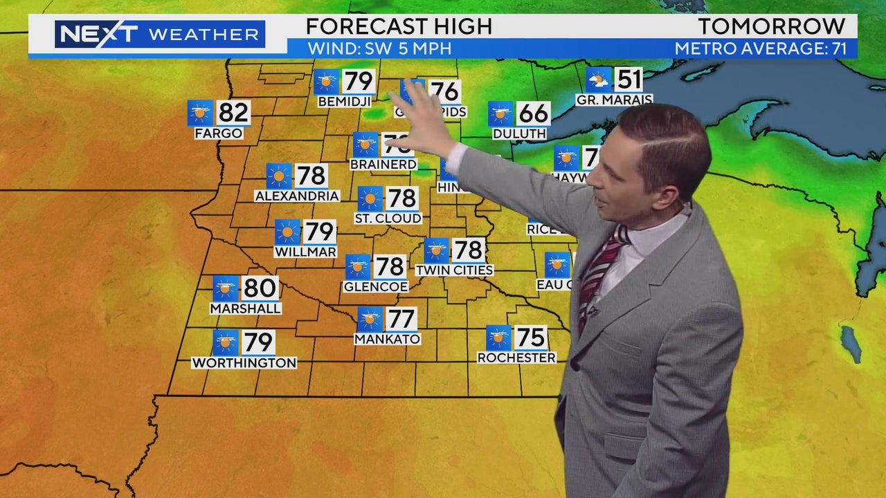 WCCO meteorologist Mike Augustyniak says temperatures will near 80 degrees on Sunday.