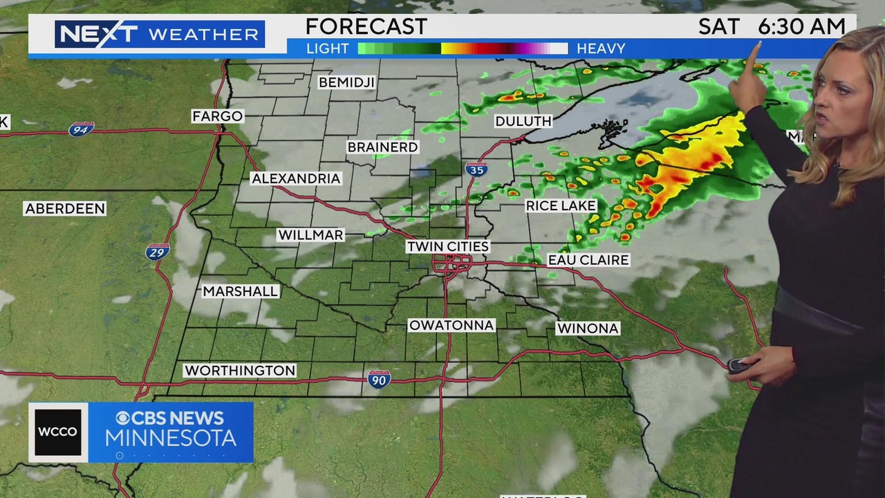 WCCO meteorologist Lisa Meadows says storms linger through about 5 a.m. Saturday and then rain chances decrease through the day.