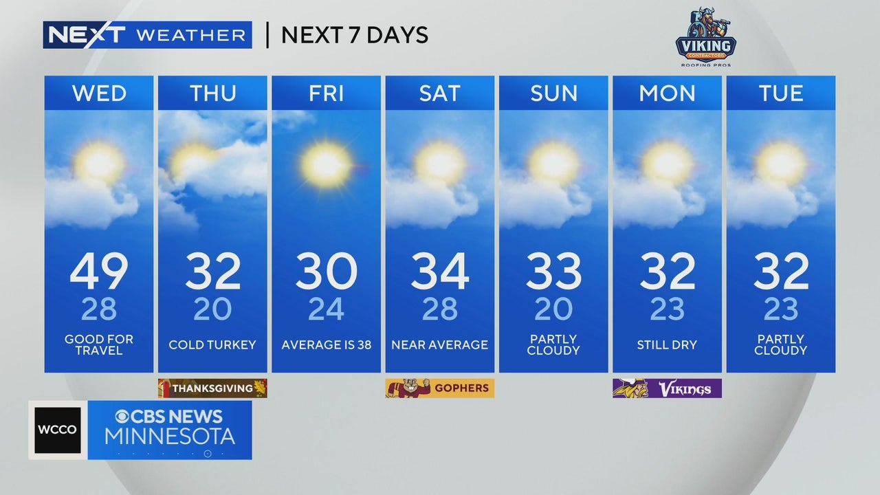 WCCO meteorologist Chris Shaffer says Wednesday will be cloudy with temperatures in the mid 40's. Then the temperatures cool down as we head into the weekend.