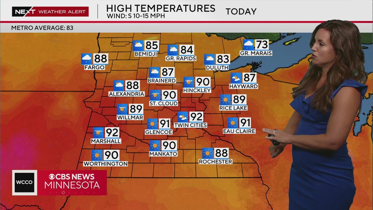 WCCO meteorologist Katie Steiner says the heat index will be around 100-105 degrees today in the Twin Cities.