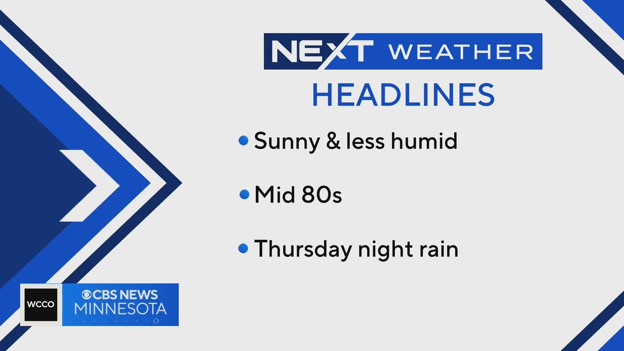 WCCO's meteorologist Lisa Meadows says that today will be sunny with less humidity than yesterday and temps in the mid 80s.