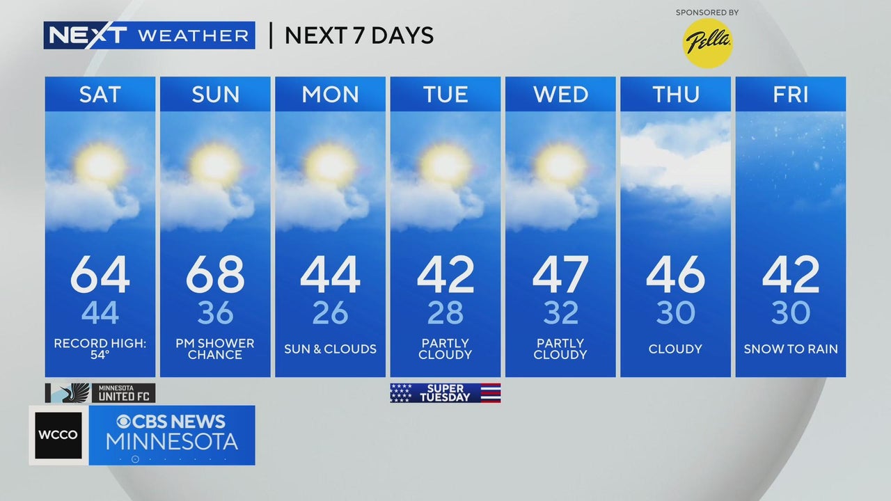 WCCO meteorologist Mike Augustyniak says high temperatures Saturday could approach the mid-60s, and on Sunday we could hit 70 degrees.