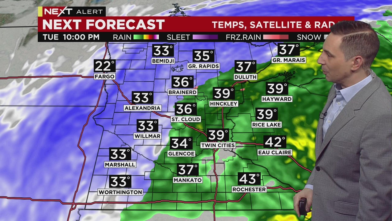 WCCO meteorologist Mike Augustyniak says rain will continue through the night and gradually switch over to snow.
