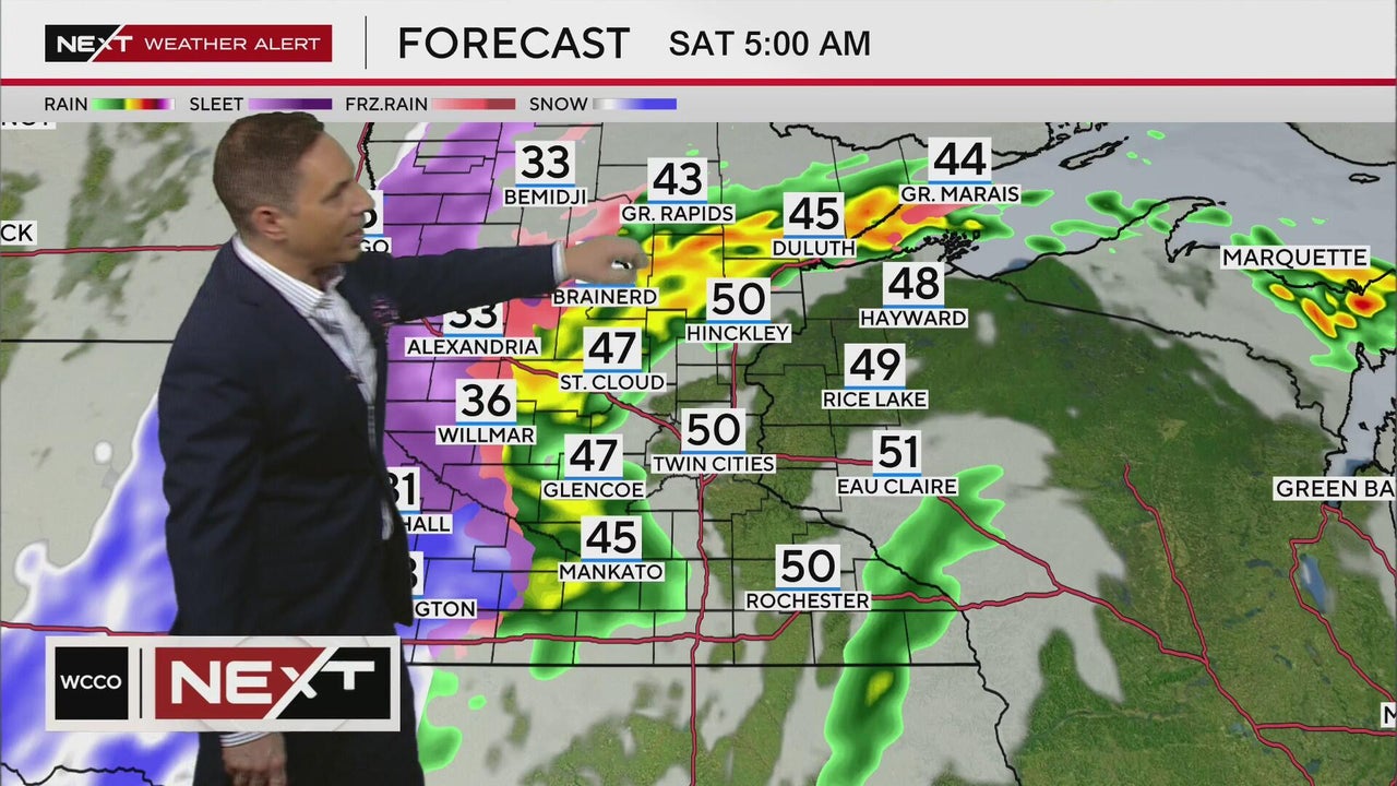 After some potentially severe storms on Friday evening in southern Minnesota, blizzard conditions make their way through western Minnesota on Saturday morning.