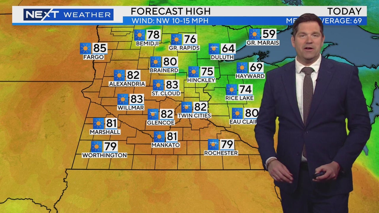 High temperatures in the Twin Cities will reach the 80s on Tuesday.