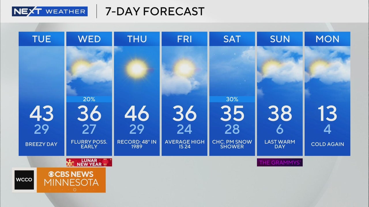 Tuesday will be breezy and warm with clearing clouds in the Twin Cities.