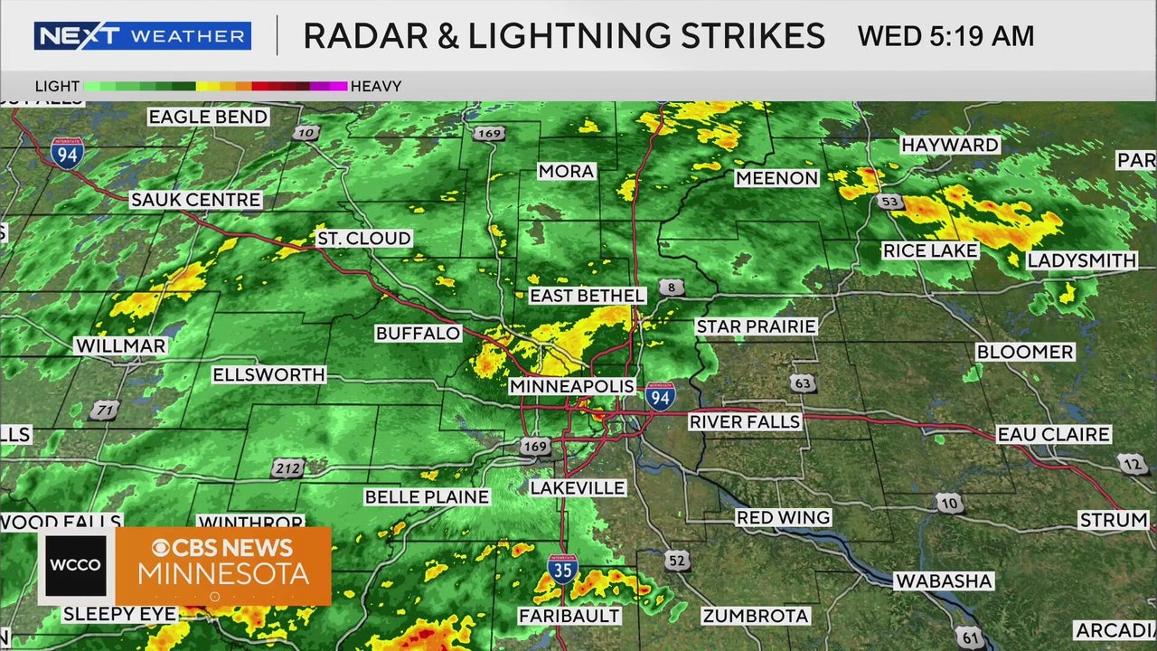 Showers and storms will continue in the Twin Cities through the morning on Wednesday before tapering off.