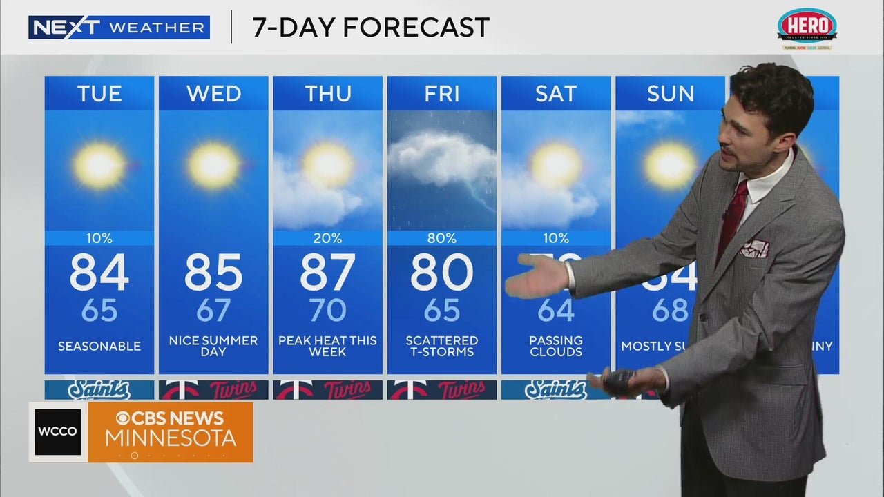 The Twin Cities will get a stretch of quiet summer weather before storms return later in the week.