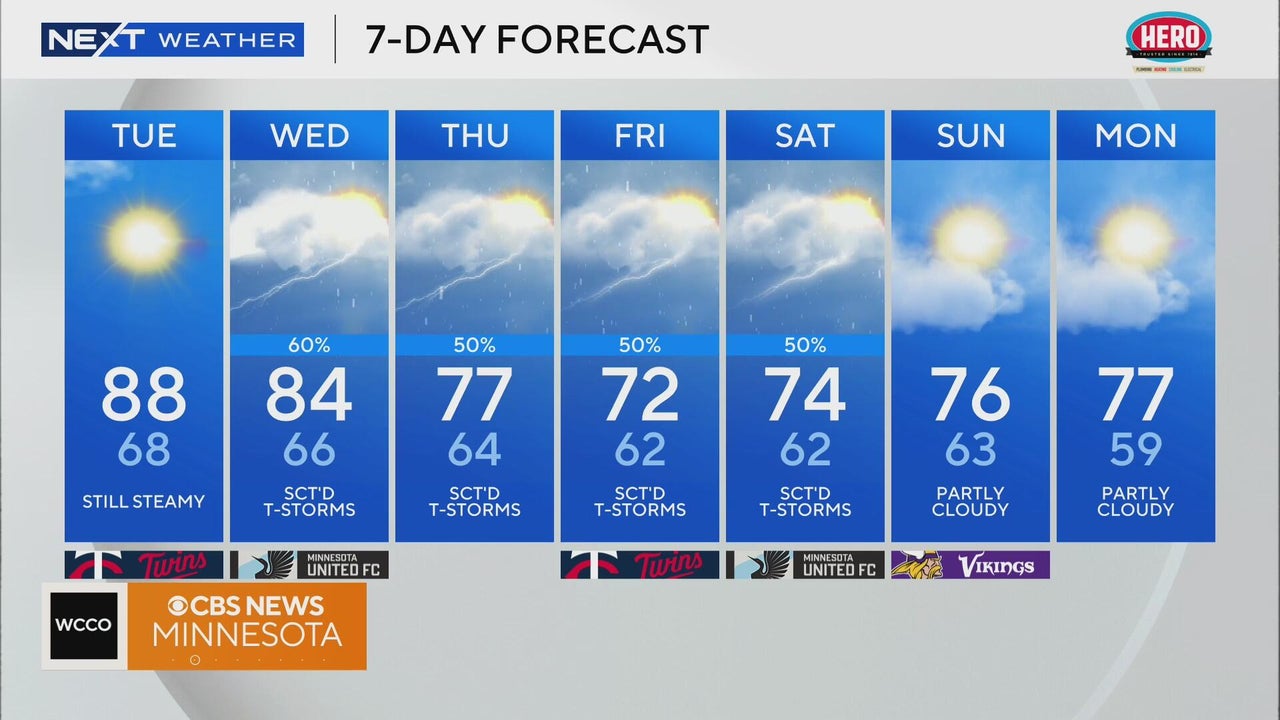 Our late-summer heat will peak Tuesday before storms and seasonable temperatures return.