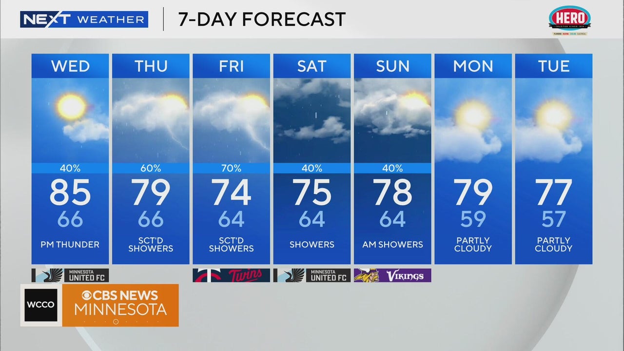 Showers and storms are possible for parts of Minnesota on Wednesday, with the Twin Cities likely to get hit in the afternoon.