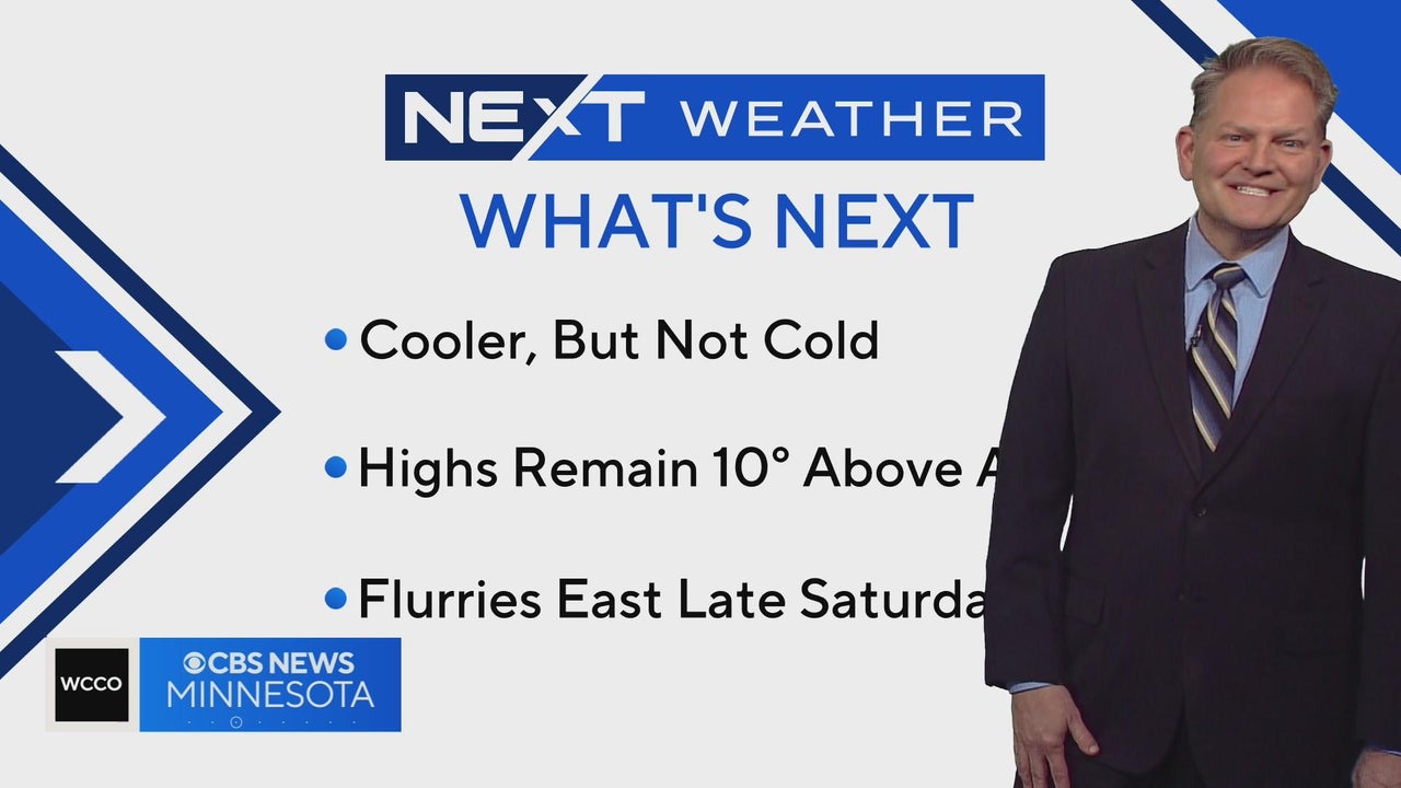 WCCO meteorologist Chris Shaffer says that you can expect the next few days to be cooler...but not cold. The temperature will still remain about 10 degrees above average.