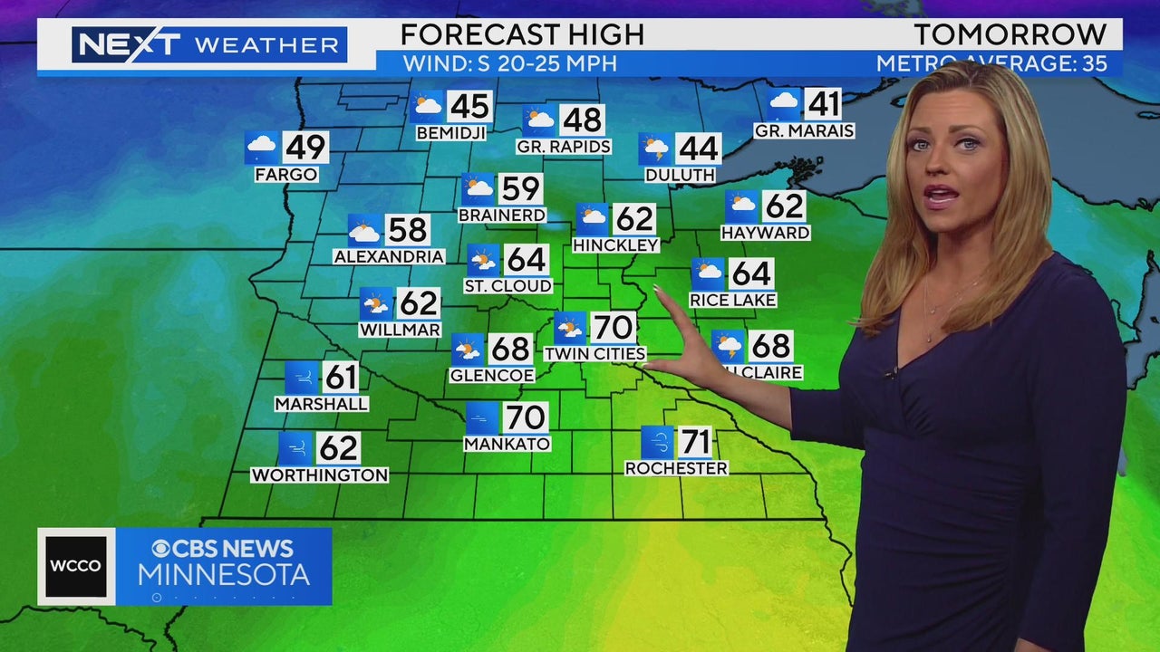 WCCO meteorologist Lisa Meadows says that today we saw a record high. Sunday will be similar with temps nearing 70s. Monday could see a rain/snow mix with highs in the 30s.