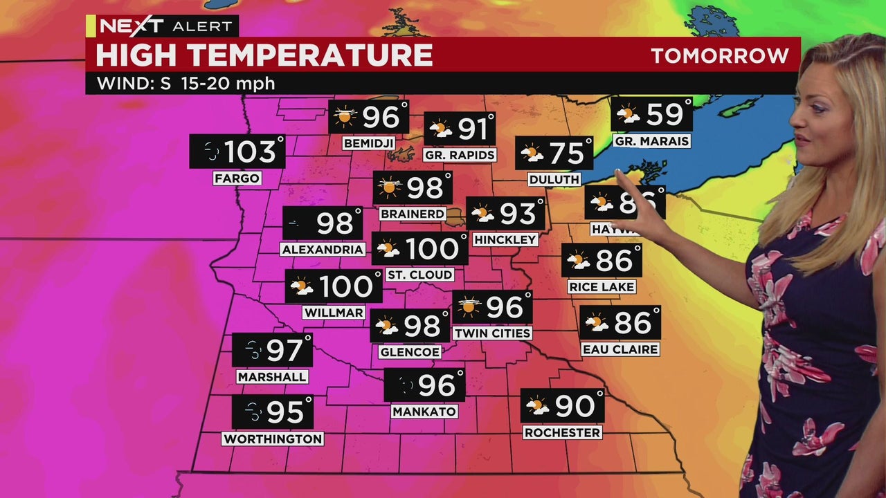 Meteorologist Lisa Meadows reports that temperatures Sunday in parts of Minnesota will hit the triple digits.