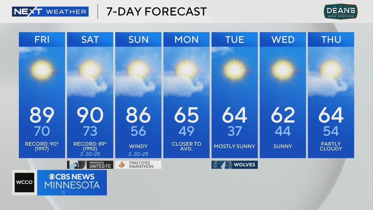 Temperatures will take a swing at 90 on Friday in the Twin Cities, which would tie the daily record high.