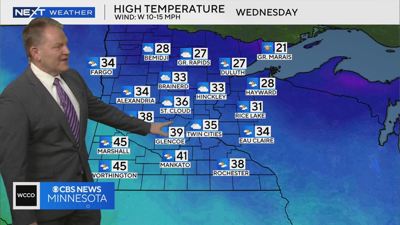 Meteorologist Chris Shaffer says 30s and 40s are in the forecast for Tuesday and Wednesday for the Twin Cities.