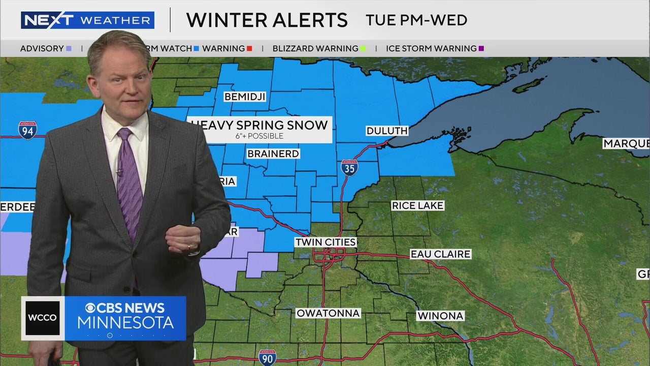 Areas of northern Minnesota may get up to six inches of snow between Tuesday night and Wednesday morning, according to meteorologist Chris Shaffer.