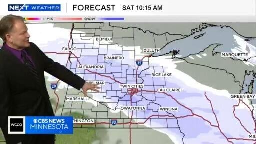 NEXT Weather meteorologist Chris Shaffer says the Twin Cities could see up to 3 inches of snow by Saturday evening.