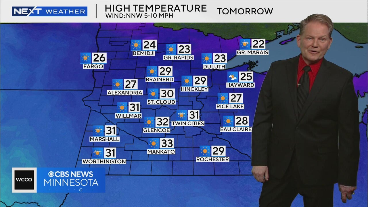 Meteorologist Chris Shaffer says high temperatures in the Twin Cities on Saturday are expected to be around 30 degrees.