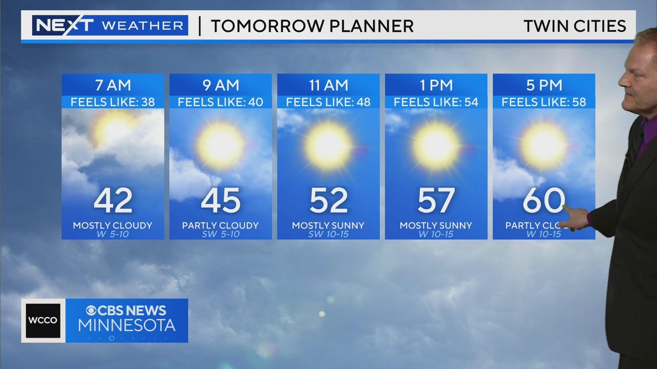 WCCO meteorologist Chris Shaffer says showers will linger into Tuesday morning before temperatures warm up to 60.