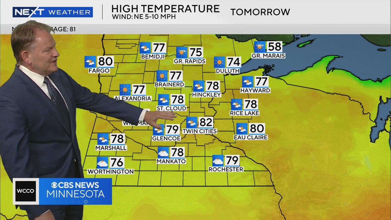 Next Weather Meteorologist Chris Shaffer says temperatures in the Twin Cities are expected to reach the low 80s, with less humidity than the last few days.