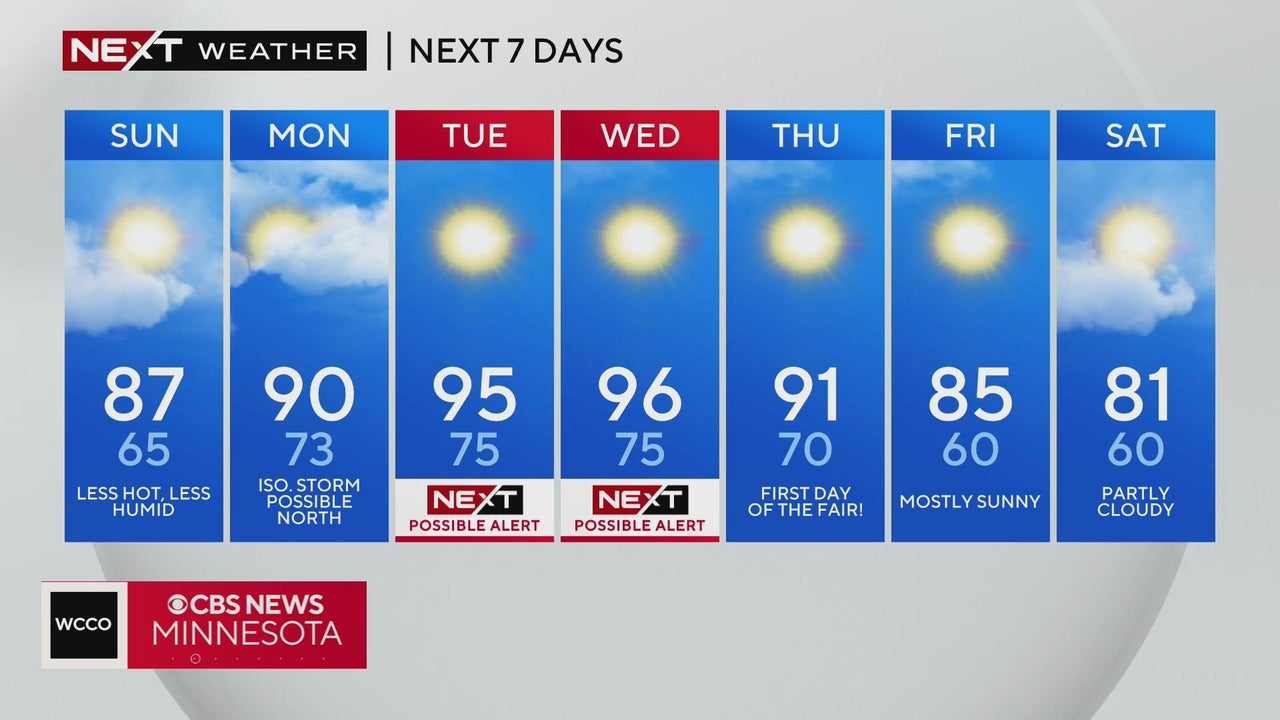 WCCO meteorologist Katie Steiner says Tuesday and Wednesday will be Possible NEXT Weather Alert Days due to the heat.
